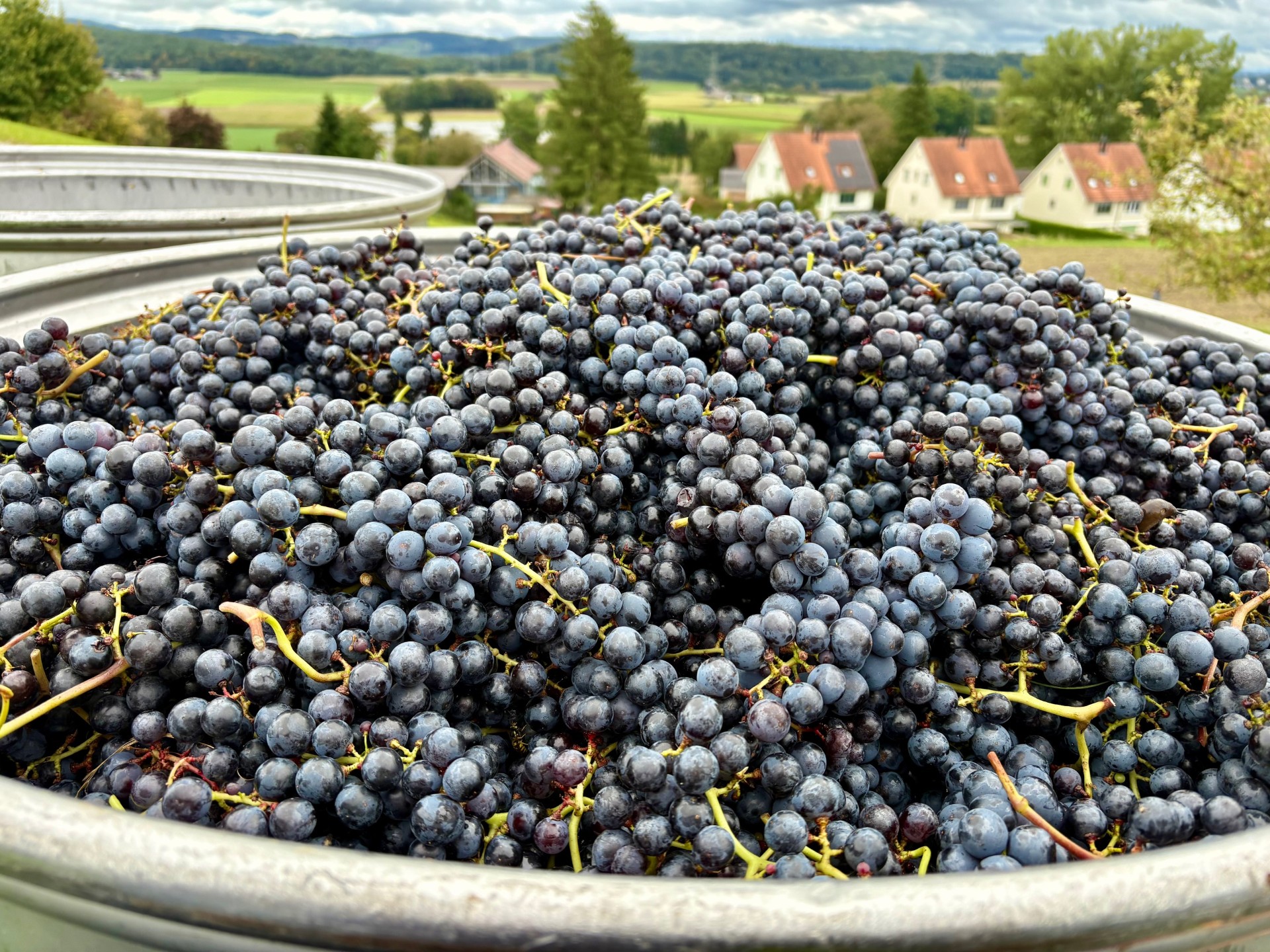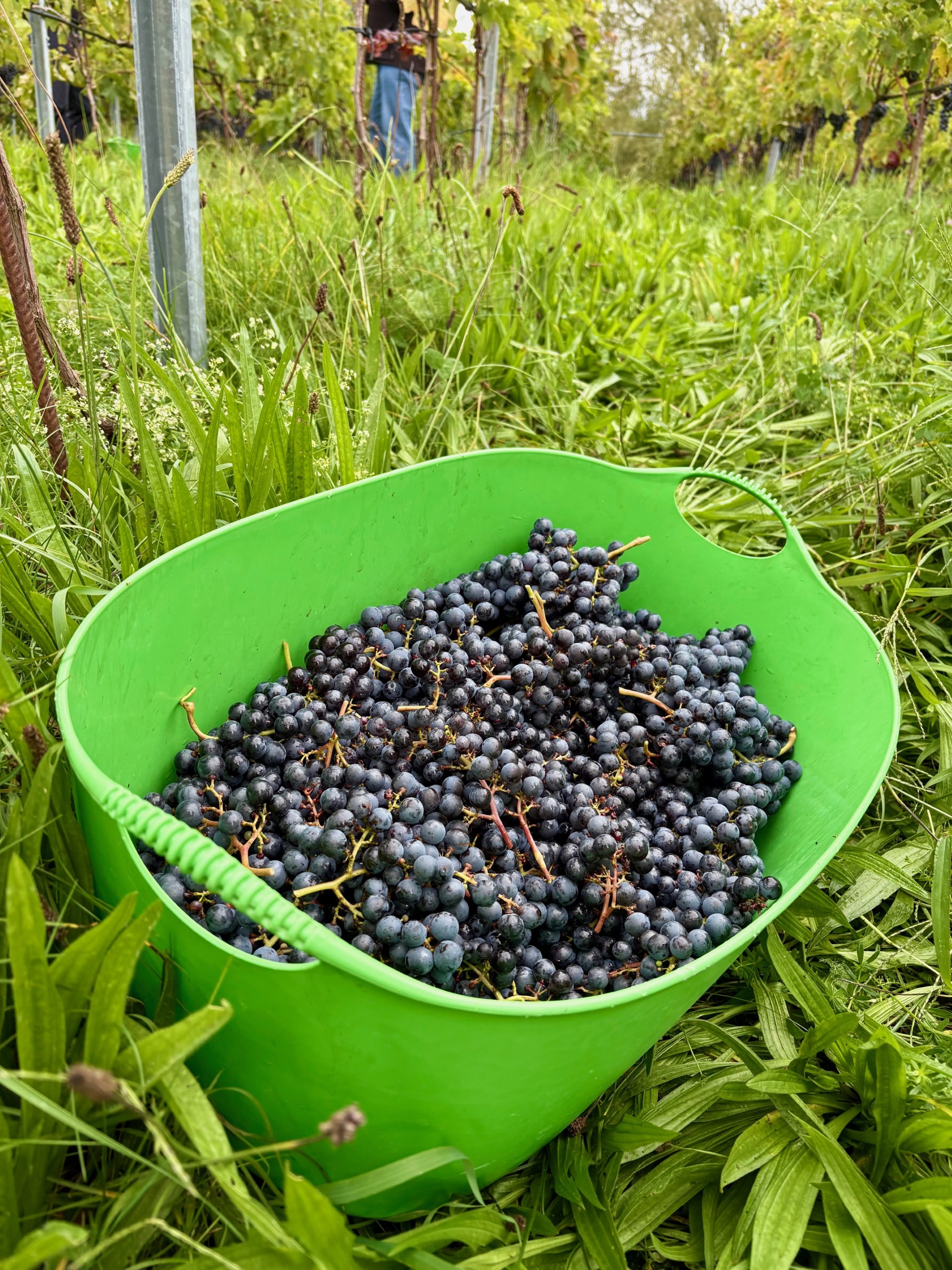 Am 25.09.2025 konnten wir zum ersten Mal unsere Merlot Trauben welche im 2020 gesetzt wurden wümme und die Trauben an den Kelterer weitergeben.